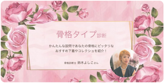 「自分に合うサイズがわからない」「なんとなく選んでいる」という方には、「グラマープリンセス」のブラサイズ診断や骨格診断のコンテンツをご利用ください。