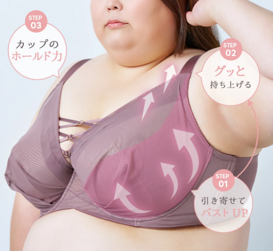 大きなバストをしっかり支える設計でありながら、苦しくない着心地を追求。長時間の着用でも疲れにくいのが特徴です。