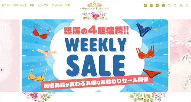 グラマープリンセスは、主に大きいサイズの女性向け下着を取り扱うブランド・通販サイトである。
