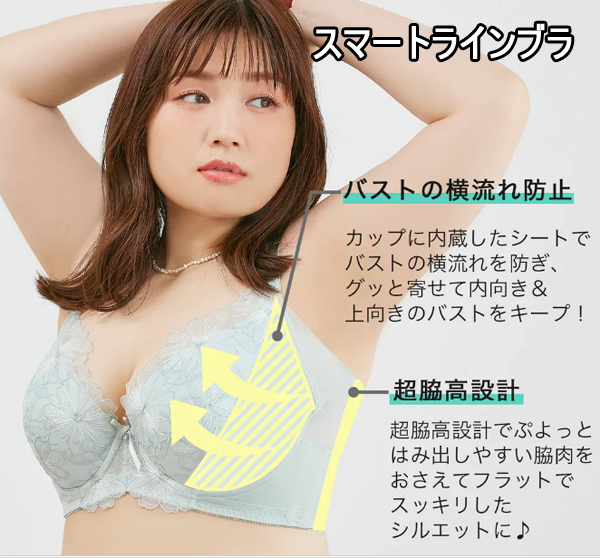 - 脇高設計:気になる脇肉をしっかりカップに収め、スッキリとしたシルエットを実現。
